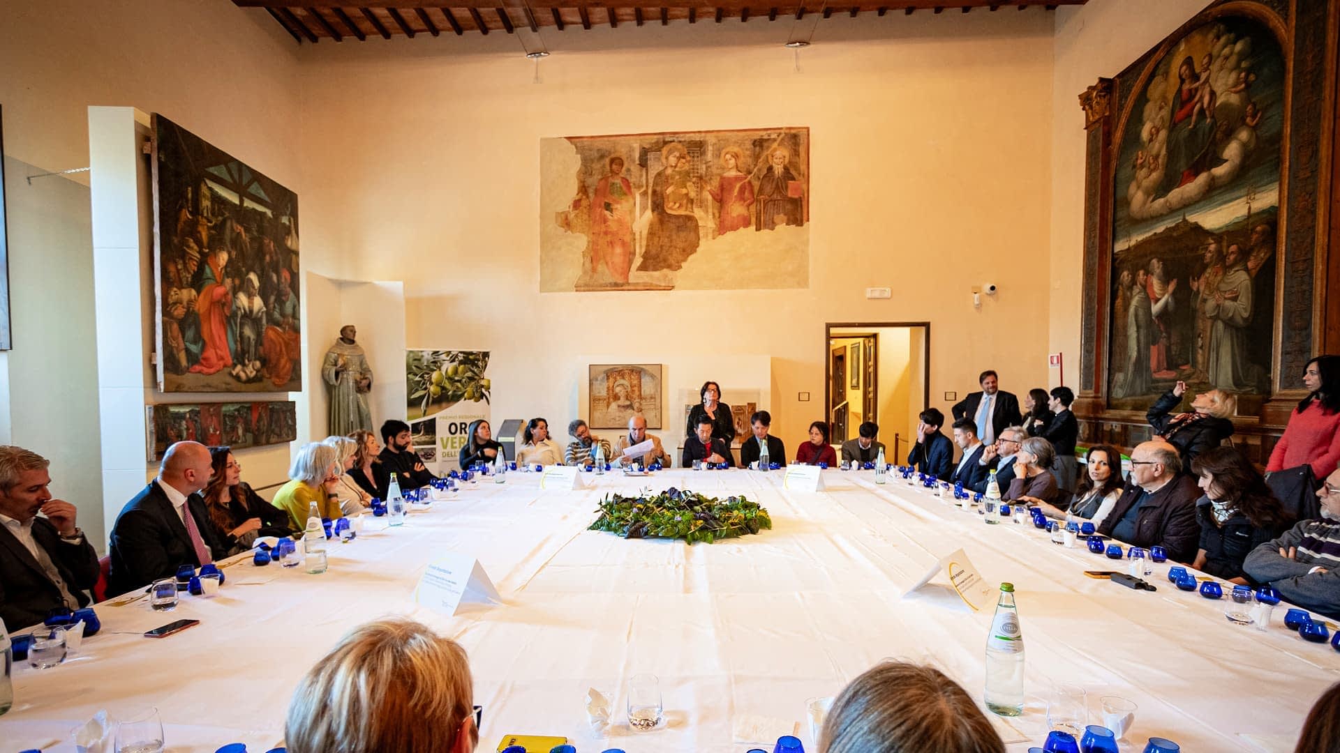 Surrounded by masterpieces created by artists of the past, including Perugino and El Greco, they were guided by the panel leaders of the Umbria Green Gold competition in the sensory analysis of extra virgin olive oils representing the five subzones of the Umbria PDO – Colli Amerini, Colli Orvietani, Colli Martani, Colli del Trasimeno and Colli Assisi-Spoleto.